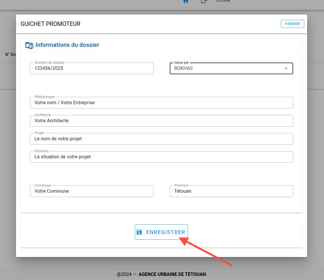 Entrez le N° du dossier.